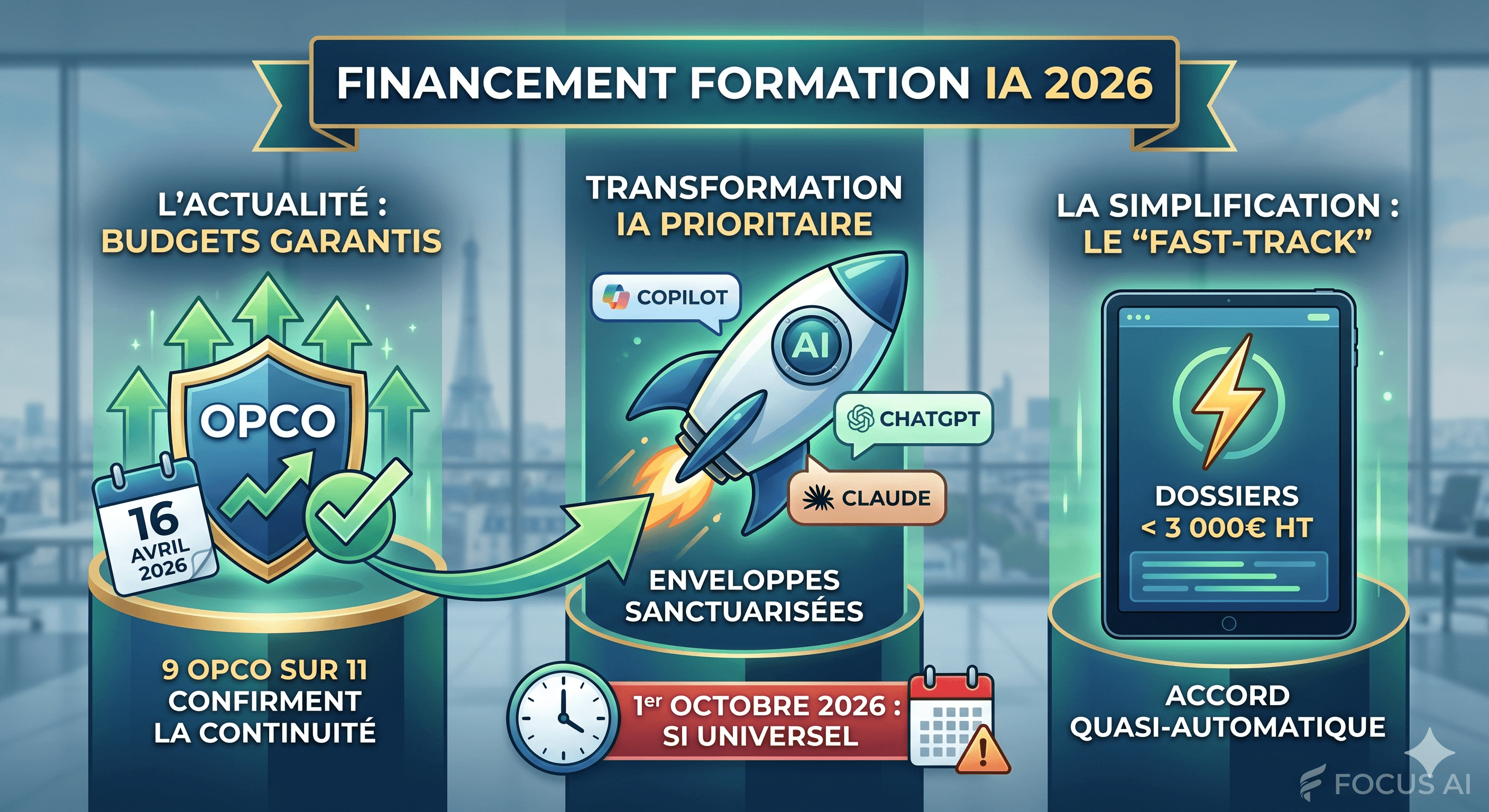 Les formations sur l'automatisation Excel et l'IA générative financière sont souvent prises en charge par l'OPCO Atlas. L'argument massue pour le dossier : "Amélioration de la fiabilité des données et lutte contre la fraude".